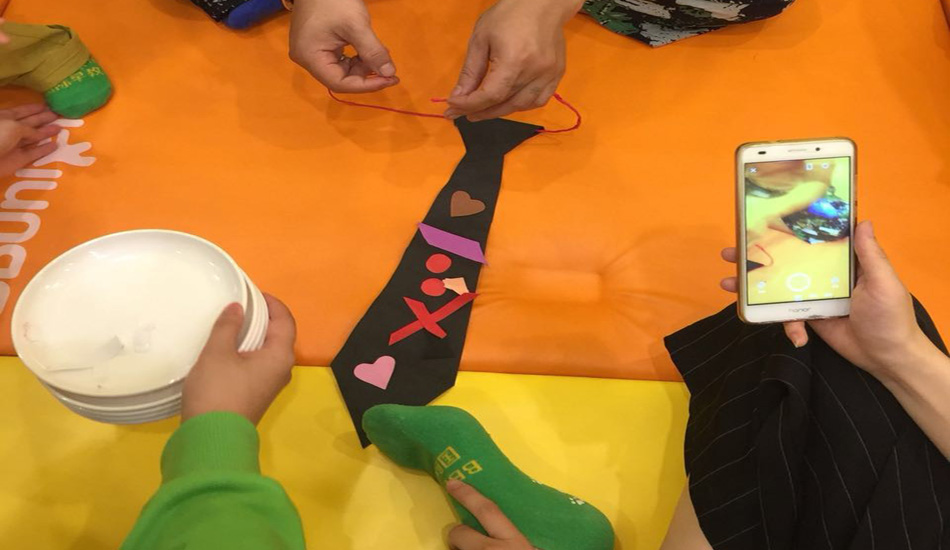 下面我们就有请老爸们带上宝贝们做的领带,隆重出场~~