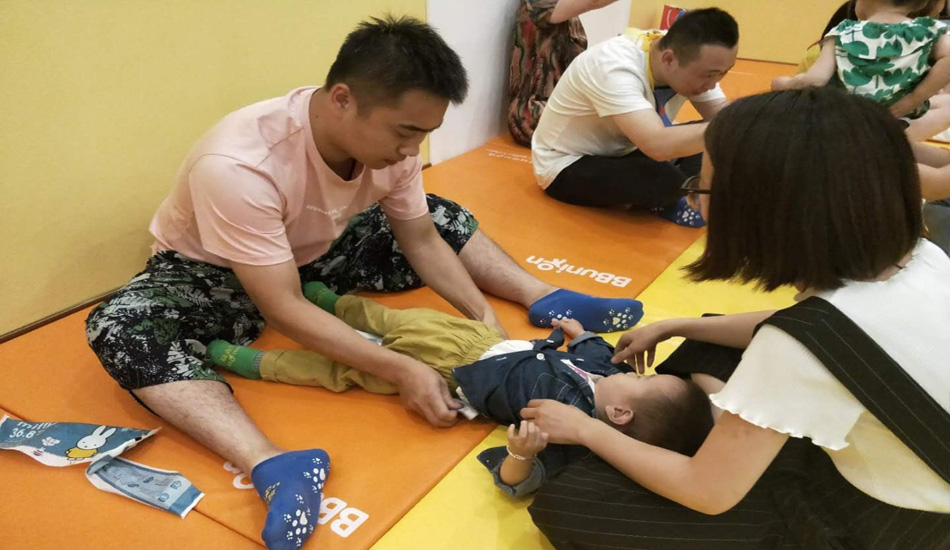 3.下面个环节要考验一下老爸们的动手能力了----老爸换尿不湿大比拼~